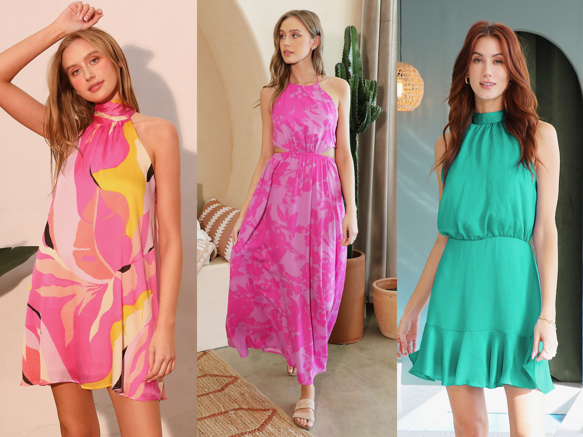 A timeless resort favorite, halter dresses offer breezy elegance with flattering necklines and flowy silhouettes made for warm getaways.