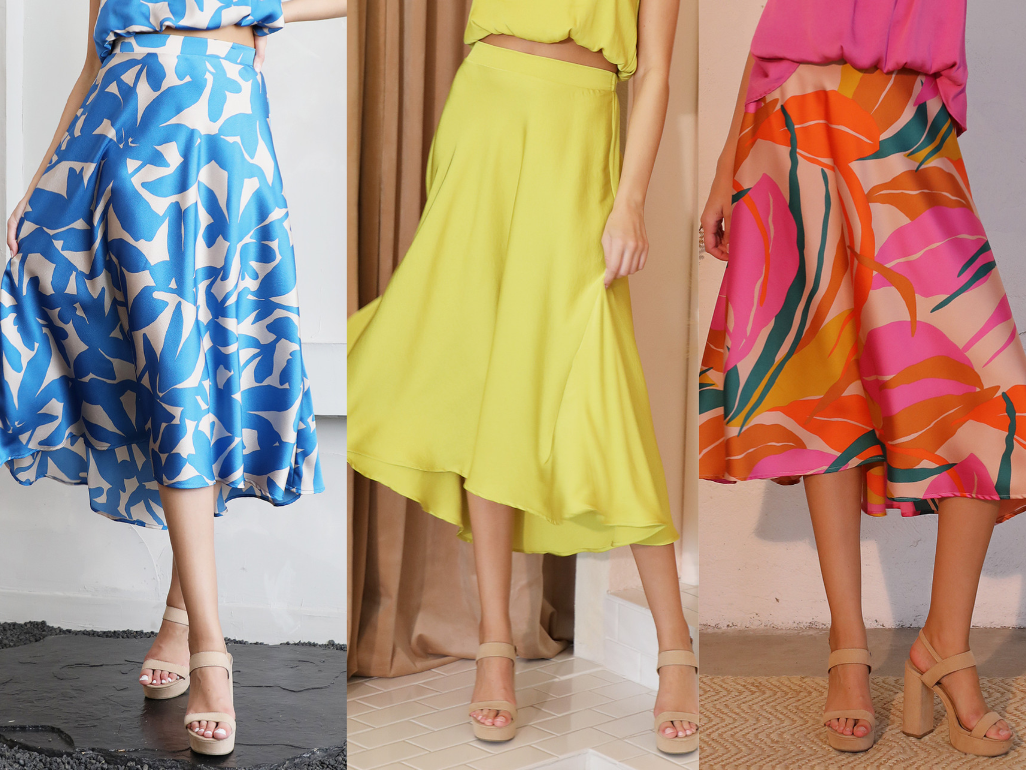 Las faldas midi están de moda, y los estilos acampanados o en línea A aportan movimiento, comodidad y una silueta elegante — perfectas para las noches de resort o días de turismo.