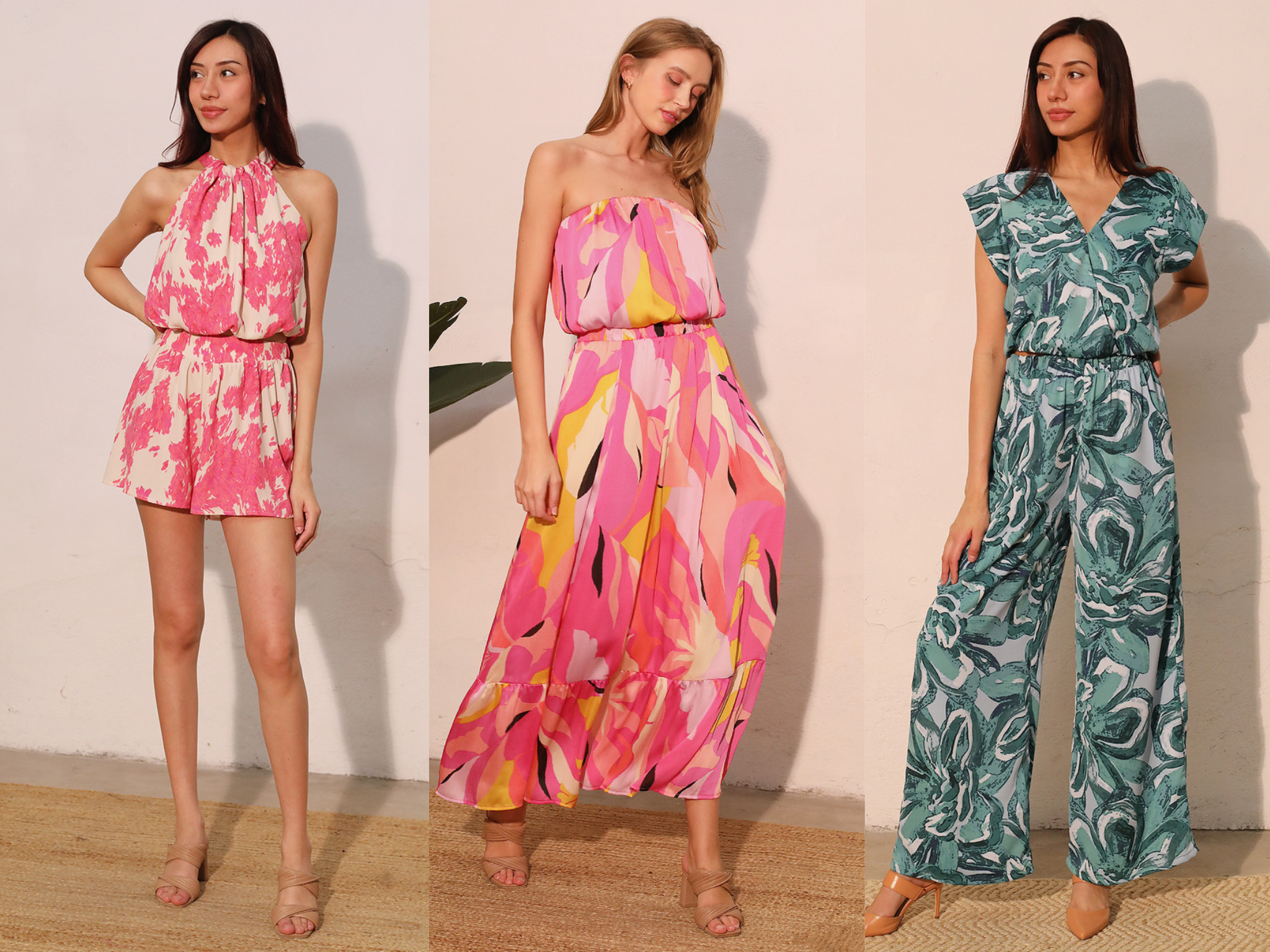 Los colores vibrantes y estampados llamativos hacen que los jumpsuits sean esenciales para el resort — sin esfuerzo, chic y perfectos para looks vacacionales de día a noche.