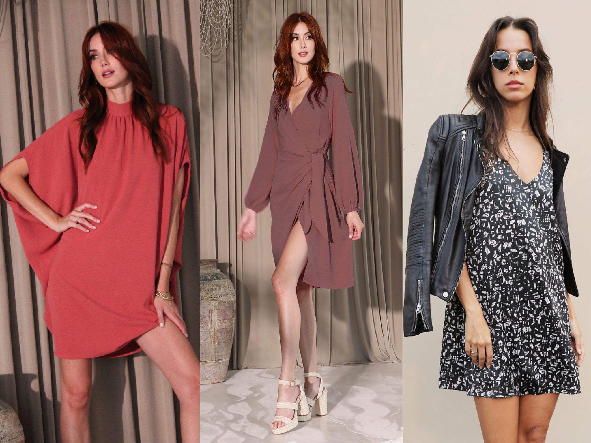 Midi slip dresses, shirt dresses, and wrap dresses are perfect transitional pieces. Pair with ankle or knee boots and a chunky cardigan or denim jacket for instant shelf-appeal.